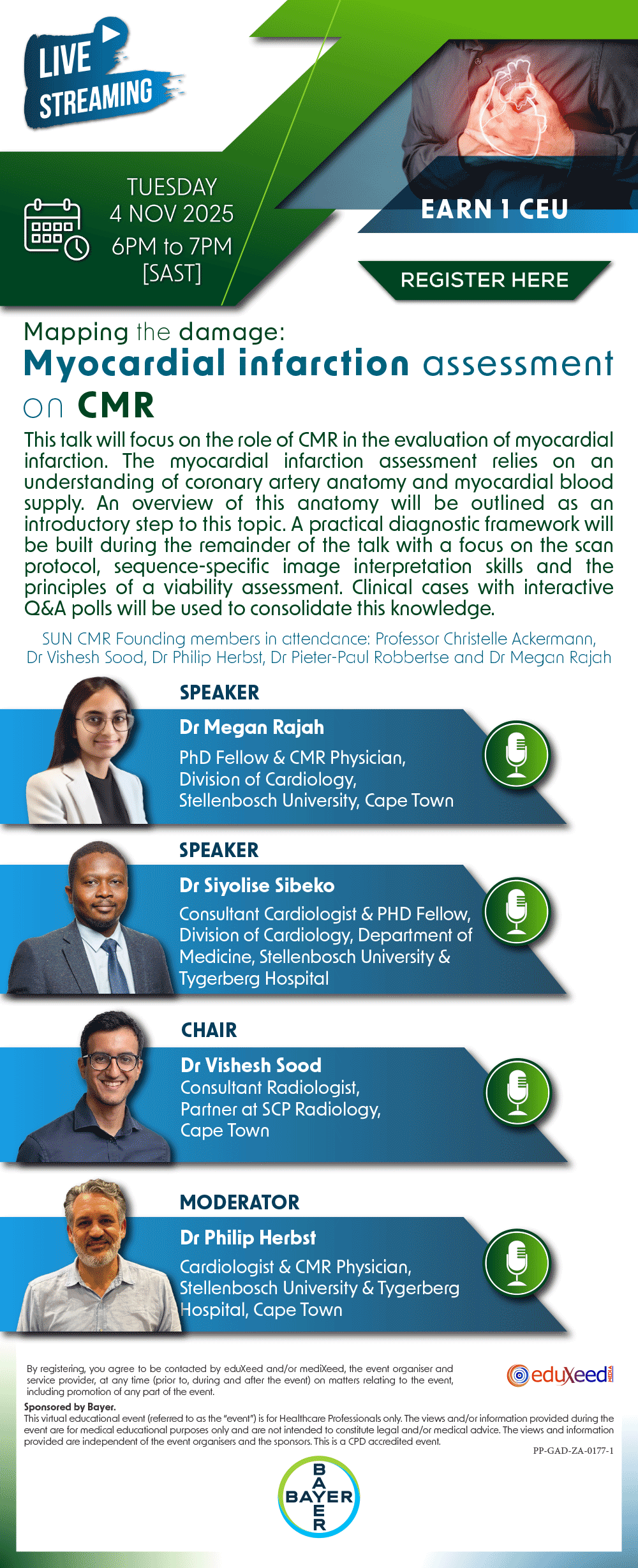 This talk will focus on the role of CMR in the evaluation of myocardial infarction.